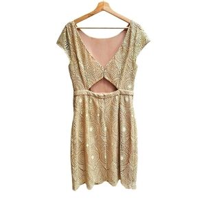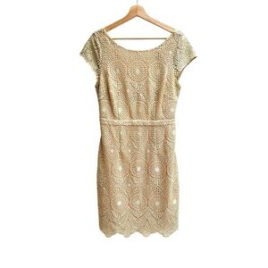 Laundry Embroidered Circle Dress with Metallic Gold Threading, Size Medium