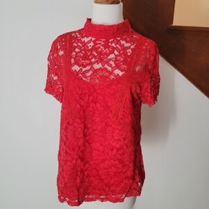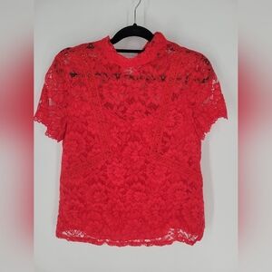 Laundry Lace Red Blouse Size S Short Sleeves