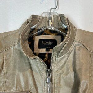 Laundry Leather Moto Jacket Leopard Lining Taupe Medium