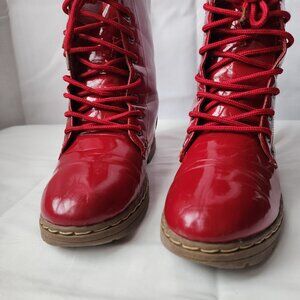 Bold and shiny red combat boots by Laundry List, size 9M.