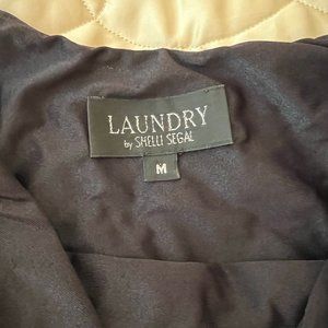 This lovely lightweight mesh halter gown is in perfect shape as it was only worn af ew times. It measures 17" from pit to pit and 51" fro the jewel neckline to the hem. The outer layer is a transparent mesh with black beading with a solid black lining. It is perfect for a cruise or a trip because it doesn't crease. The fabric is very stretchy with an A-line shape so could fit a variety of body types. It is in perfect condition.