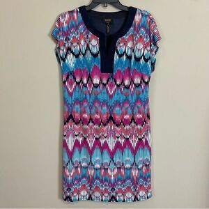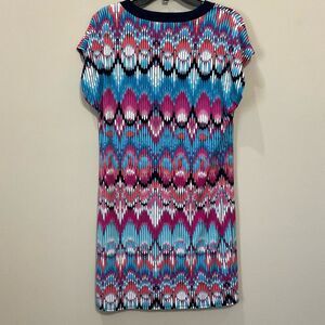 Laundry Mini Shift Dress Breezy Brezze Matte Jersey Lined Sz M Multi-Color