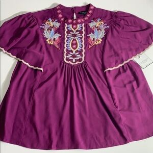 Laundry Mock Neck Embroidered Boho festival Top purple women’s medium new w tags
