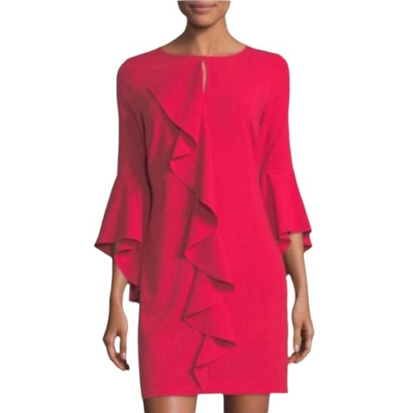 Laundry NWT by Shelli Segal Ruffle Keyhole Mini Dress Red Size 4