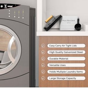Dryer Sheet Dispenser: The dryer sheets holder dispenser fits up to 240 dryer sheets and keeps your laundry room looking well organized and is a great space saving for your laundry room.