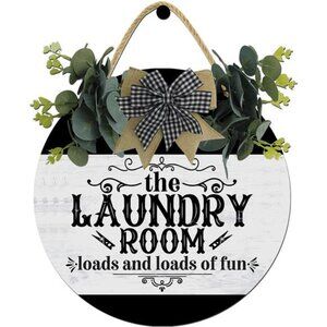 Laundry Room Loads Of Fun Sign,Weird Decor,Rustic Round Wooden Wreath,New Home