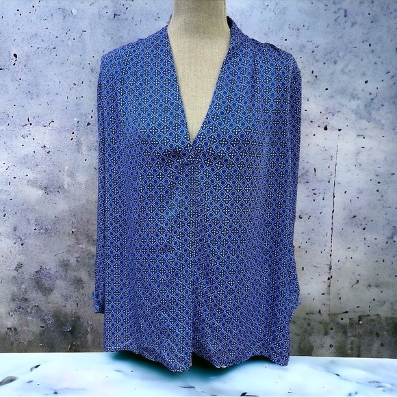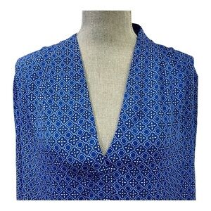 Laundry Shelli Segal Blouse Size XLarge Blue & White Long Sleeve Geometric Тор