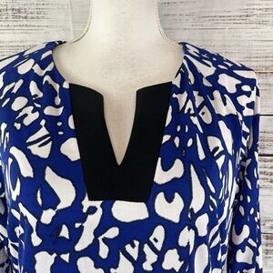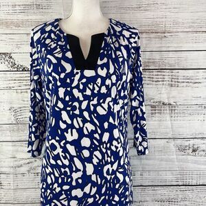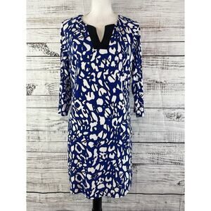 Laundry Shelli Segal Dress size Medium Blue Black Slinky Straight Knee Stretch