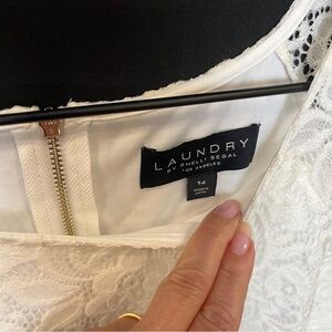Laundry Shelli Segal Ivory White Floral Lace Overlay Knee Length Dress Size 14