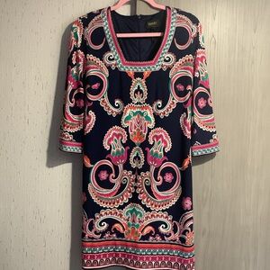 Laundry Shelli Segal Los Angeles multicolored 3/4 bell sleeve dress womens Sz 4