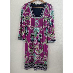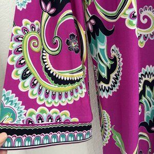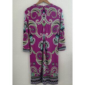 Laundry Shelli Segal Sheath Dress Womens 8 Purple Bell Sleeve Celestial Abstract