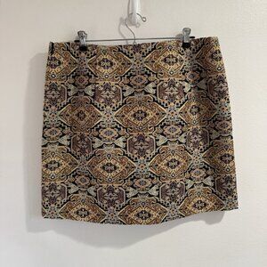 Laundry Shelli Segal Skirt 14 Pencil Gold Black Metallic Boho Oriental Lined