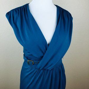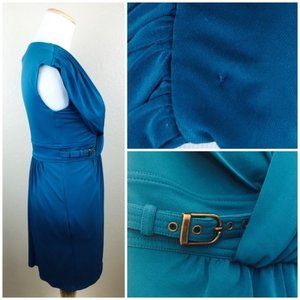 Laundry Shelli Segal Teal Draped Sheath Belt Dress