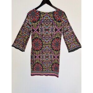 Laundry Shelli Segal Vibrant Medallion Geometric Print Retro Shift Knee dress 8