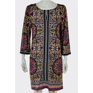Laundry Shelli Segal Vibrant Medallion Geometric Print Retro Shift Knee dress 8