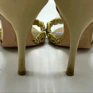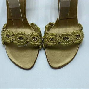 Laundry Shelli Segal gold satin adjustable ankle strap heel with gold crystal details
