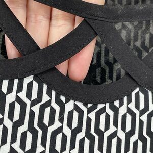Laundry by Shelli Segal Black & White Patterned 3/4 Sleeve Shift Dress Women's Size 12 Stretchy Material With Zip Closure, Scalloped Cut Out Neckline Detail Career Casual