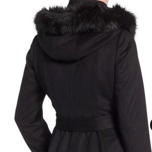 Laundry Wool Fit and Flare Coat with Fur Hood