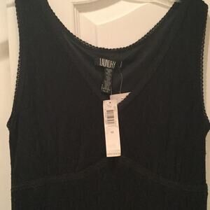 Ladies little black dress is a black lace sheath over a full black stretch slip lining. All attached so everything stays in place. Super simple yet very pretty on . Hemline hits around knee . NWT size 12