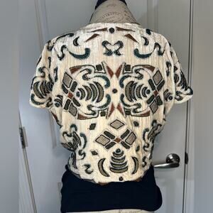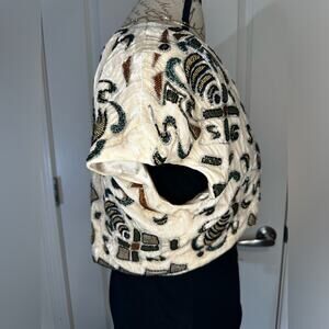 Beautiful velvet shrug/shawl. Cream color with teal and bronze beading. Add some flare to your formal affair and keep you warmer!