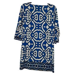Laundry by Design Blue Geometric Print Dress Womens SZ 2 Mod Retro Shift Preppy