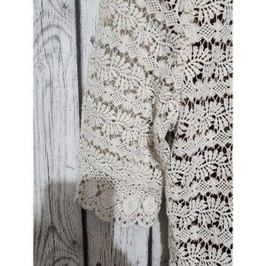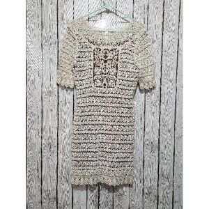 Laundry by Design Crochet Dress Ivory Brown Scallop Aztec Boho Straight Pencil S. The hook and eye broke off and I found a safety pin in its place, see the photo. I ship every day, I do not accept returns, and ask that you please view all pictures before purchasing. I am open to offers and feel free to message me with questions.