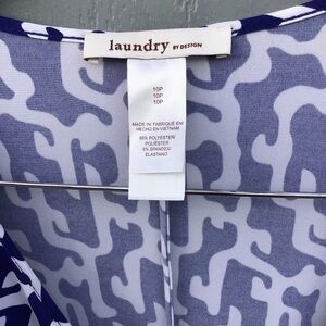 Laundry by Design Dress Womens Small Blue White Printed Ruched Sheath Stretch