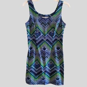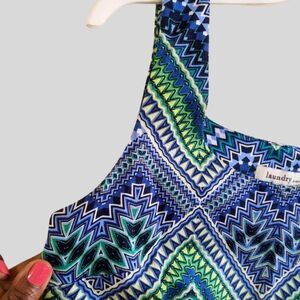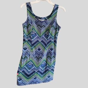 Laundry by Design Dress Women’s 2 Blue Green Geometric Print Sleeveless Cotton