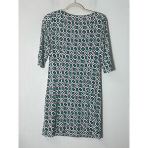Laundry by Design Green White Geometric Print 3/4 Sleeve Length Shift Dress Sz 2