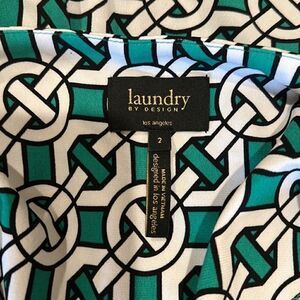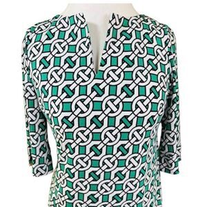 Laundry by Design Grn/Wht/BIk Geometric Print Slip on Shift Dress Size: 2