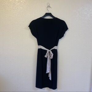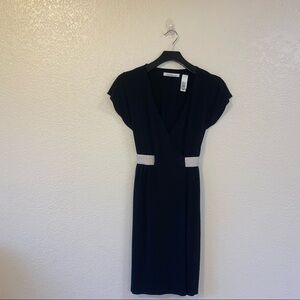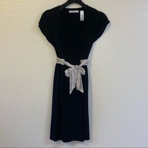 Laundry by Design little black cocktail dress. Sheath-style dress with a plunging v- neckline. Knee-length with short sleeves. Good pre-owned condition.