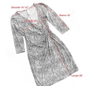 Printed wrap dress - Draping on the waist - Split on the front side from waist - 1/3 sleeves - Super stretchy fabric - Printed blue and white