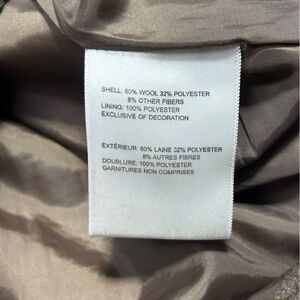 • Material: 60% Wool, 32% Polyester 8% other fibers (Shell); 100% Polyester (Lining)