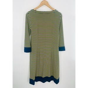 Laundry by Design Yellow and Navy Blue Stripe Dress 3/4 Sleeves w/ Zipper Detail