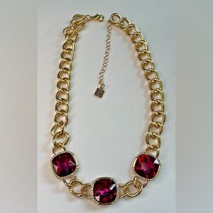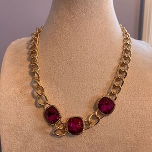 Laundry by Sheli Segal gold statement necklace magenta pink gems