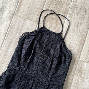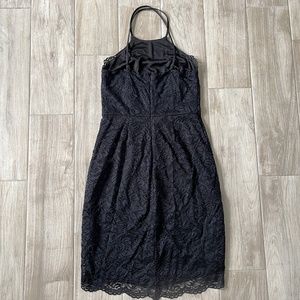 Black lace dress with adjustable straps. Zipper back, and scalloped lace detailing.Fits true to size. Only worn twice to events.