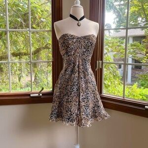 Laundry by Shelli Segal 100% silk leopard print flowy strapless mini dress in size 4!