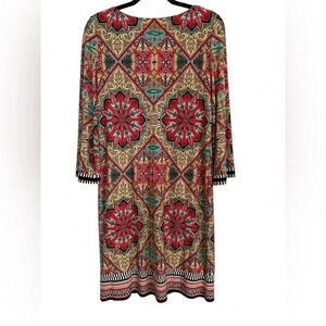 Laundry by Shelli Segal 3/4 Sleeve Shift Dress Size 8 Multicolored V Neck Lined