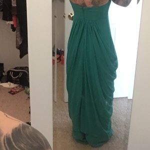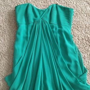 Aloe green. Beautiful strapless dress with a draped looked. Worn once. Great condition.