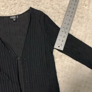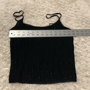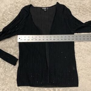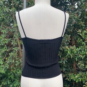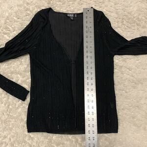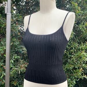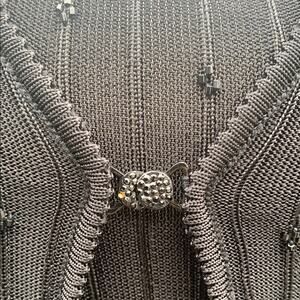Elegant black cardigan and tank set. Features delicate bead detailing. Perfect for any occasion.
