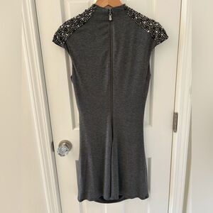 Laundry by Shelli Segal Beaded Gray Ruched Jersey Cocktail Dress - Size 8