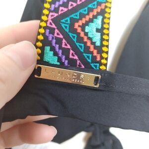 Laundry by Shelli Segal Black Aztec Oasis Wrap Bikini Top Size Small New