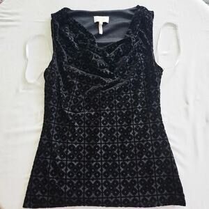 Laundry by Shelli Segal Black Burnout Velvet Cowl Neck Tank Top Women’s Small