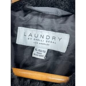 Laundry by Shelli Segal Black Puffer Jacket Removable Hood Trim Women’s XL. Measurements are approximate.