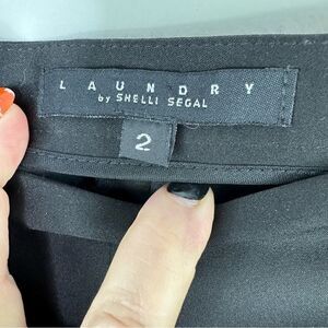 Laundry by Shelli Segal Black Satin Flat Front Wide Leg Evening Pants Sz 2