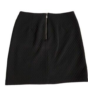 Brand: Laundry by Shelli Segal. Occasion: Casual. Any. Size Type: Regular. Size (Women's): 2. Material: 100% polyester. Style: Mini skirt. Color: Black. Pattern: Textured. Quilted. Features: Exposed back zipper. Front zipper pockets. Quilted pattern. Heavy-duty zipper at the back and two front pockets.