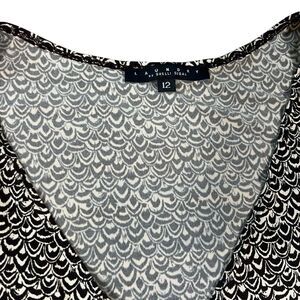 Laundry by Shelli Segal Black White Geo Print Wrap Dress Short Sleeve Size 12