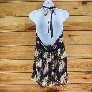 Laundry by Shelli Segal Blouse Halter Neck Womens Sz M Multicolor Feathers Silk