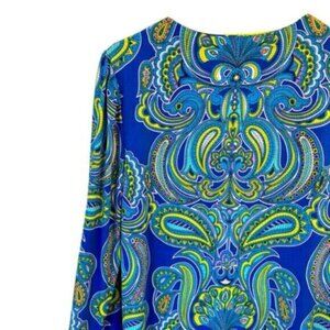 Laundry by Shelli Segal | Blue Green Paisley Lined V Neck Shift Dress Size Large