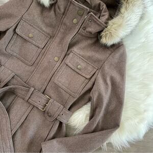 Laundry by Shelli Segal Brown Wool Belted Fur Outerwear Jacket M